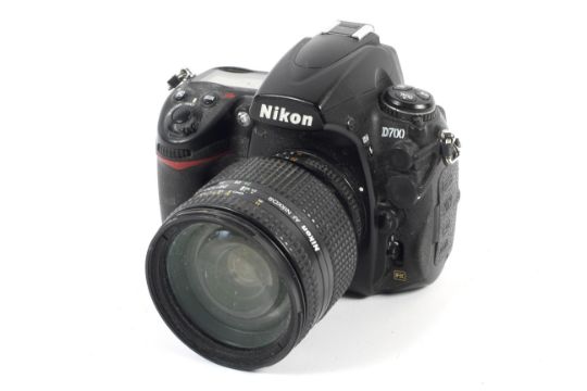 A Nikon D700 DSLR camera. With a Nikkor 24-120mm 1:3.5-5.6 lens