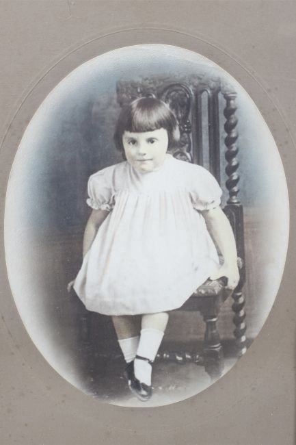 Arts & Crafts : A circa 1900 moulded relief frame. With a repainted gilt Watts type slip and an oval hand coloured image of a child and oak barley twist chair, the frame with oak leaf and acorn bas relief, overall measurements H62.2cm x W46.8cm