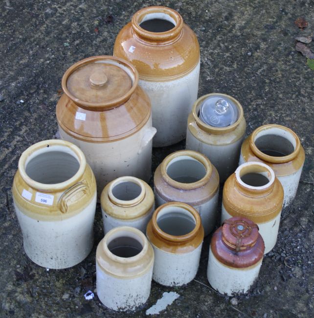 A collection of salt glazed stoneware jars. Max. H36cm