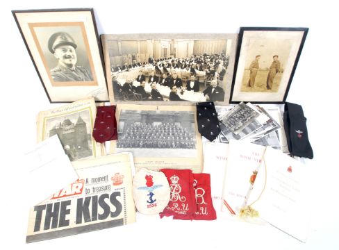 A collection of military items. Some items related to the Parachute Regiment, three ties, inflatable life ring, Royal Military Academy Sandhust ephemera, including photographs, The War Illustrated magazine, patches, etc.