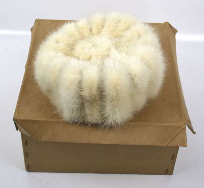 A ladies vintage mink fur hat. White, with a satin lining, Diameter 20cm