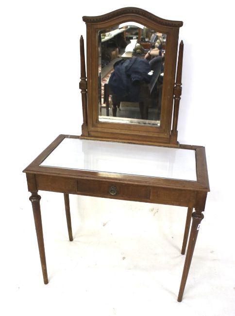 A early 20th century dressing table. With a swing mirror, a single drawer on turned tapering supports. L88cm x D51cm x H153cm