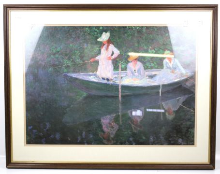 A print of Claude Monet 'Three Fishing Boats'. Framed and glazed, 48.5cm x 69.5cm