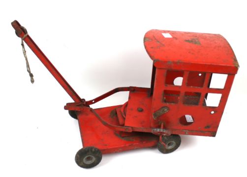 A Mamod steam tractor and Tri-ang toy crane. The crane coloured red, H30cm, the steam tractor, H18cm