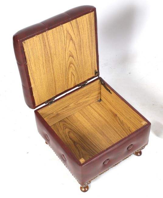A mid-century tea trolley and a footstool. The trolley with an under tier and on tapered supports, H71.5cm x W66cm x D45cm