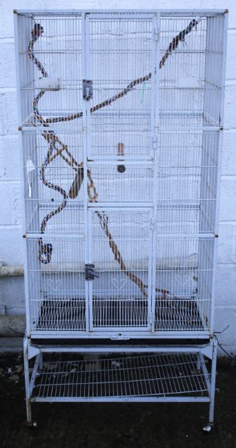 A large birdcage. On casters, H176cm x W81cm x D47cm