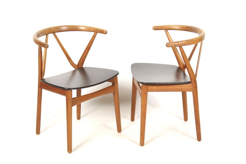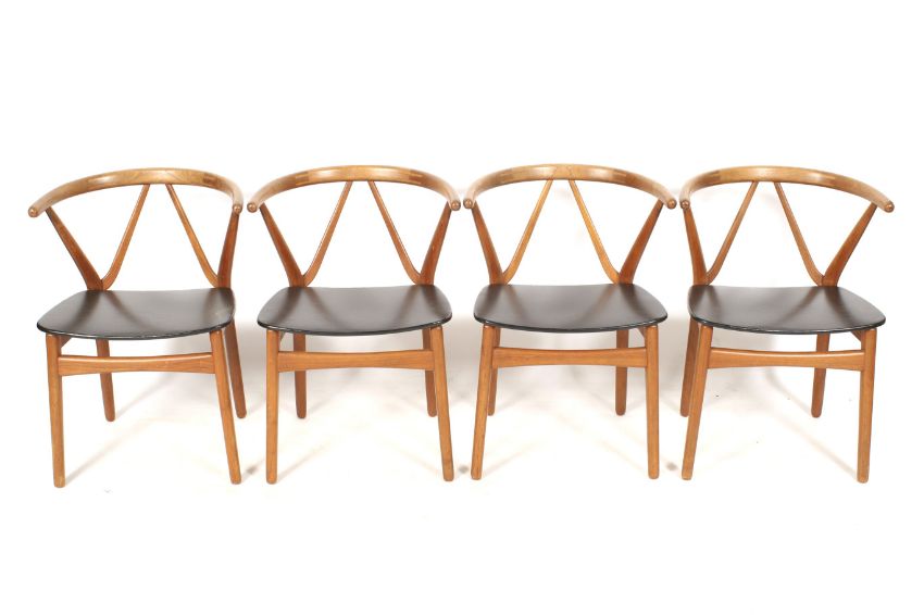 Henning Kjaernulf, a set of four model 255 chairs. Manufactured by Bruno Hansen, Denmark, circa 1960. Stamped with maker's name and 'arkitect kjaernult', H74cm