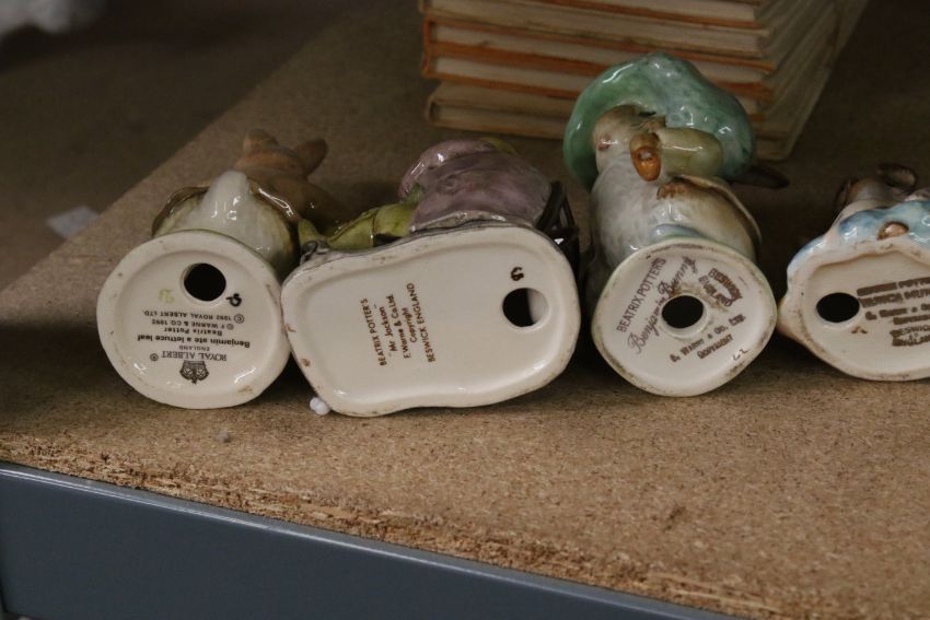 A collection of nine assorted Beatrix Potter figures and books. Mostly Beswick including 'Mr Jackson' and 'Simpkin', etc. Max. H11cm
