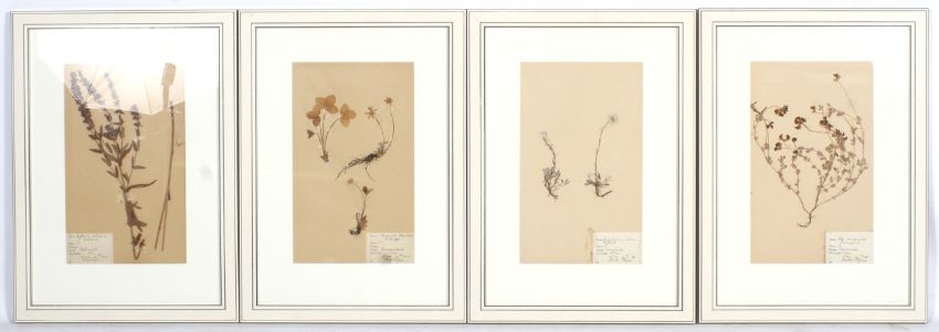 Botanical interest - a set of four pressed flower specimen c1930s. Including 'lotus corniculatus', etc. Framed and glazed. 23cm x 39cm