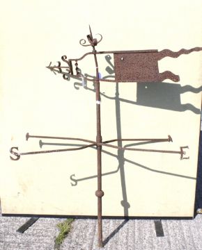 The structure is rusty. The top is slightly crooked, the 'N' & 'W' marks are missing as are the ends of one of the 'flags' to the top and the ends of some of the scrolls. No signs of repair.