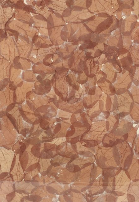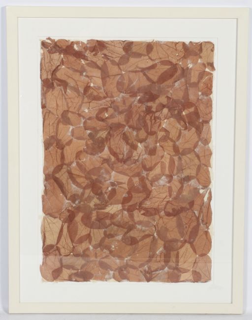 A contemporary 'leaves' picture. A sheet of hand made paper with leaves. Framed and glazed. 56cm x 79cm