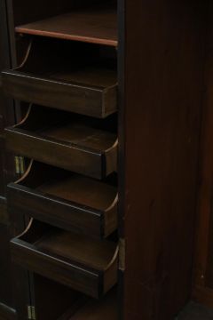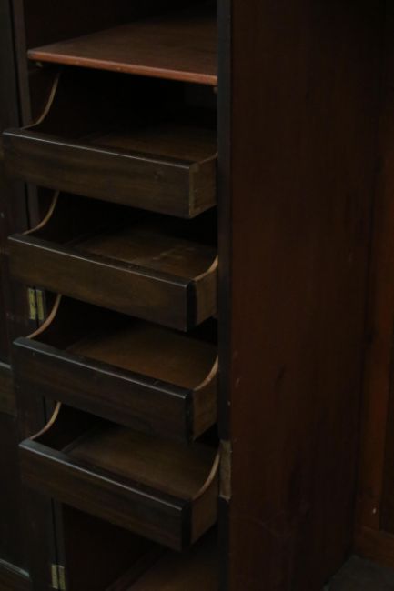 This wardrobe shows wear commensurate with age, some beading loss to bottom right hand door, some scraping to the left hand side and a scratch on the right side.