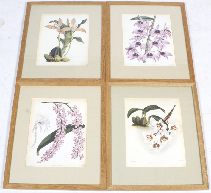 A set of four prints of orchid flower book illustration. Including 'Aerides Lobbii', etc. All framed and glazed. 23cm x 30cm