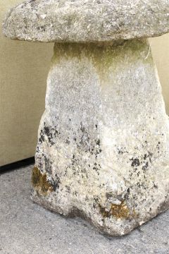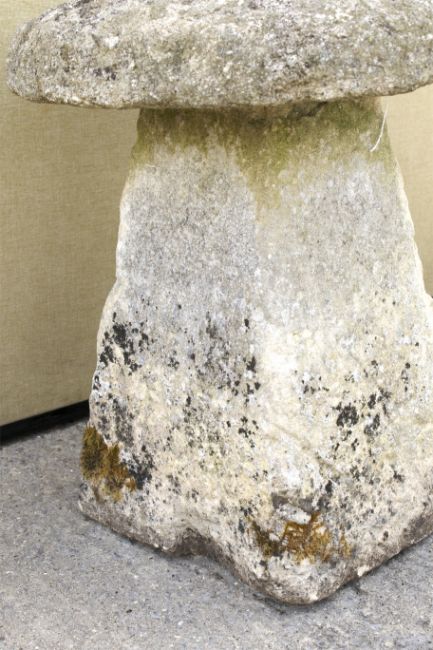 A natural staddle stone. With square tapering base and domed 'mushroom' top, approx. 61cm high overall, the top 51cm diameter