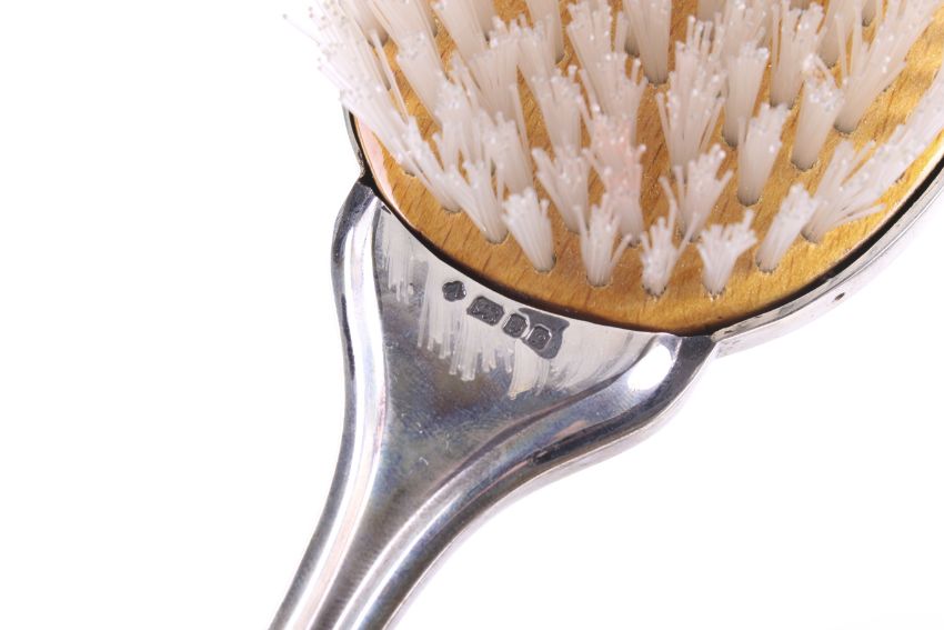 Please note the imitation-tortoiseshell comb-tines are not original, mis-shaped and the wrong size for the mount and rather crudely glued into the silver mount.