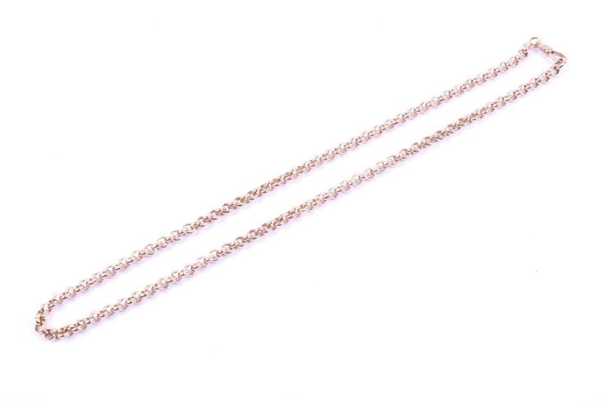 A modern 9ct rose gold belcher link necklace. On a swivel clasp, the Birmingham hallmarks obscured, approx. 52cm long overall (20 1/2 inches), 40.5g