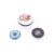 Three round boxes including a Continental silver and blue guilloche enamelled round compact. The hinged lid pierced with a marcasite basket of flowers, import hallmarks for Birmingham 1927, 5cm diameter (2 inches), approx. 41g gross; a tortoiseshell mounted silver round box, the hinged lid inset with a tortoiseshell panel inlaid with a ribbon-tied bow, a round reserve and musical trophy, hallmarks for London 1918, approx. 5.5cm diameter overall (2 1/4 inches), 37g gross; and a porcelain trinket box printed with neo-classical figures in a landscape after Angelica Kauffman, 5cm high overall 7.25cm diameter (2 x 2 7/8ths inches)