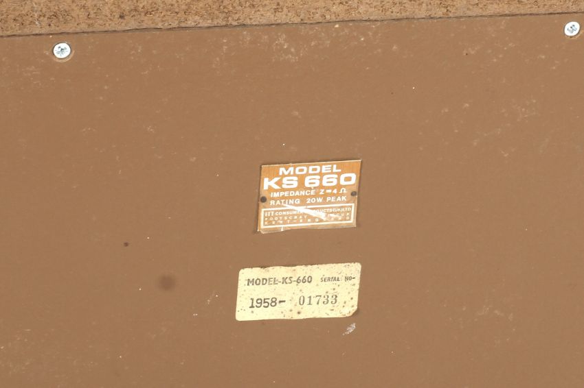 A pair of mid-century oak veneered ITT, KS 660 hi-fi speakers. H71cm