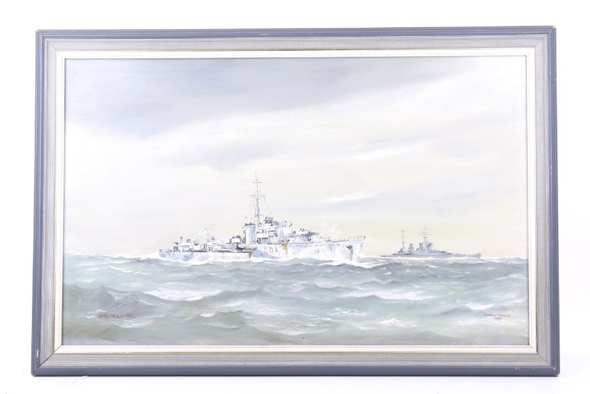 Stanley Rogers, oil on board, 'HMS Onslaught', 1990. Signed and dated lower right, 45.5cm x 73.5cm. Framed.