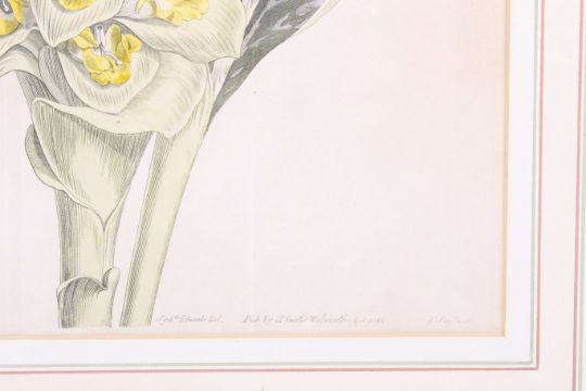 A 19th century hand coloured botanical etching. Published by S. Curtain Walworth April 1813, 20.5cm x 24cm, framed and glazed