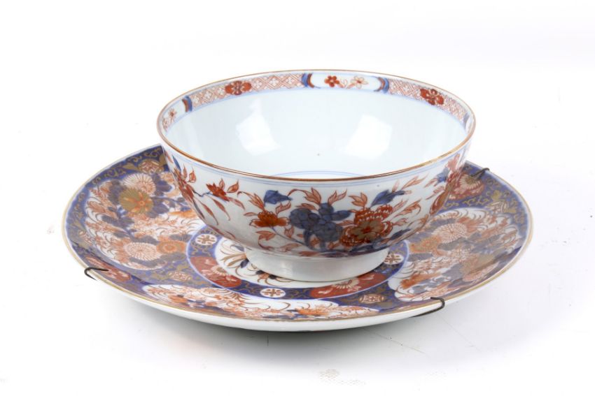 An 18th century Chinese bowl. Decorated around the body and to the well with peonies growing from rocks. Diameter 22.5cm.