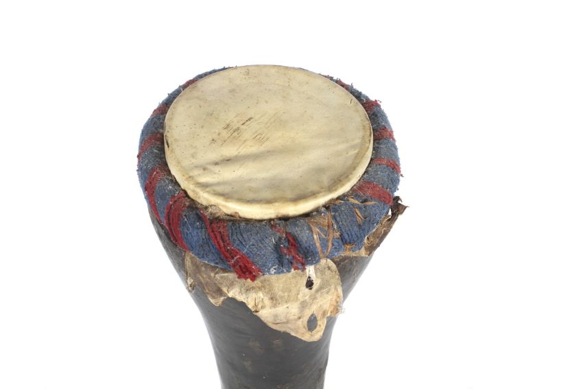 Papua New Guinea. A Southern HIghland kundu, drum. Of waisted form with striped decoration to lower section. H100cm.Lots 1-58 in this auction are all from the same collection, the majority of which was collected in Papua New Guinea in the 1970s and 1980s.