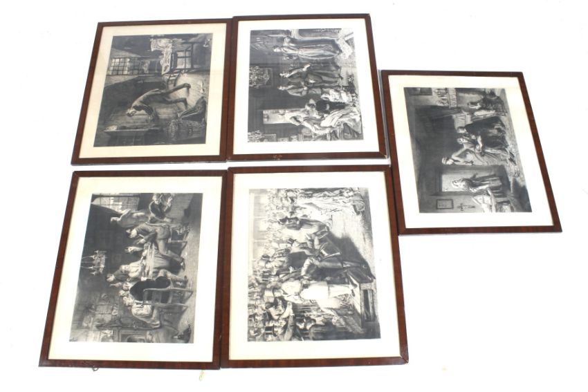 Léopold Flameng after William Powel Frith, a set of five 19th century 'Road to Ruin' engravings. 45cm x 54cm, framed and glazed