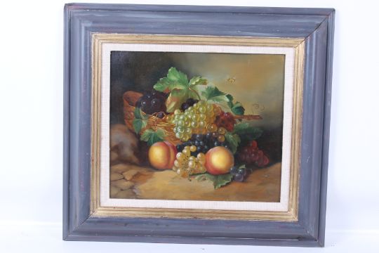 20th Century 'Still life - basket of fruit' oil on canvas. Unsigned. 30cm x 27cm. Framed