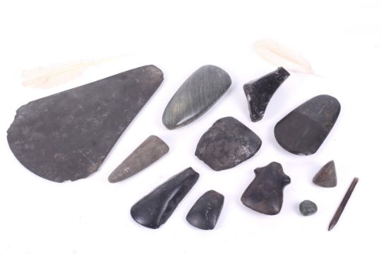 Papua New Guinea. A group of green and black stone axe heads. The largest L30cm.Lots 1-58 in this auction are all from the same collection, the majority of which was collected in Papua New Guinea in the 1970s and 1980s.