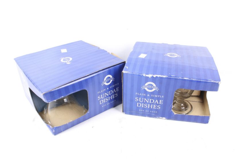 Two sets of four glass sundae dishes. In the original boxes, H12cm