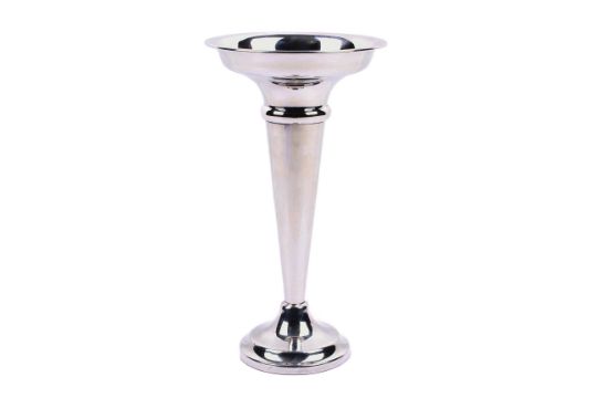 A sterling silver vase by Fred H Adams & Holman. Hallmarked Birmingham 1957 Stood 22cm high on pedestal foot vase bowl 12cm diameter. 279 grams gross weight.