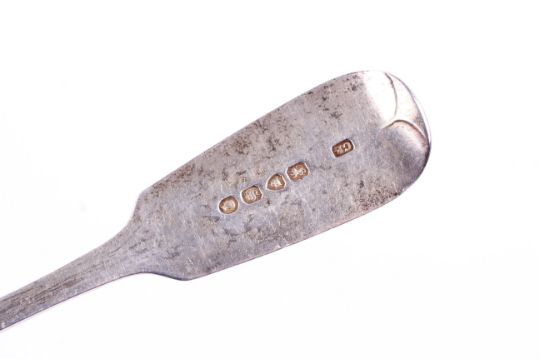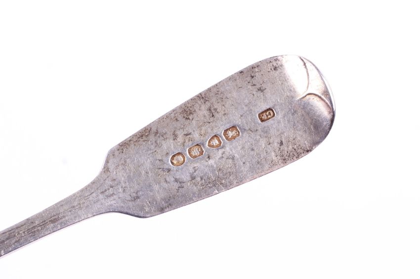 Nine silver George III and later spoons. Including seven George III and two Victorian dessert and teaspoons, various dates and makers. Total weight 467.2g.