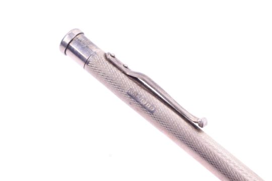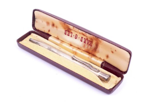 A silver Yard o' Lead propelling pencil, boxed. With Patent No 422767 and lion passant mark, in the original fitted box.