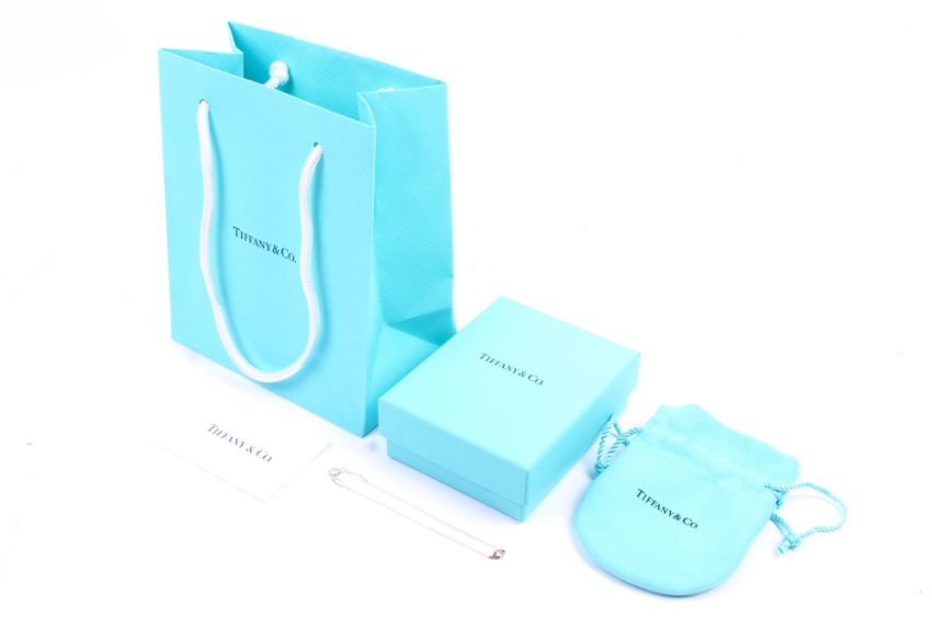 A sterling silver bracelet for Tiffany & Co by Elsa Peretti, from 'her diamonds by the yard collection'. Set with one round brilliant cut diamond of 0.05 carats. Complete with original Tiffany & Co. packaging. 1g gross