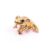 A late 20th century hallmarked 9ct gold brooch. In the form of a squatting frog with blue stone cabochon eyes. Overall dimensions 25mm x 28mm approximately. Hallmarked 9ct gold, London 1994. 7.85g gross