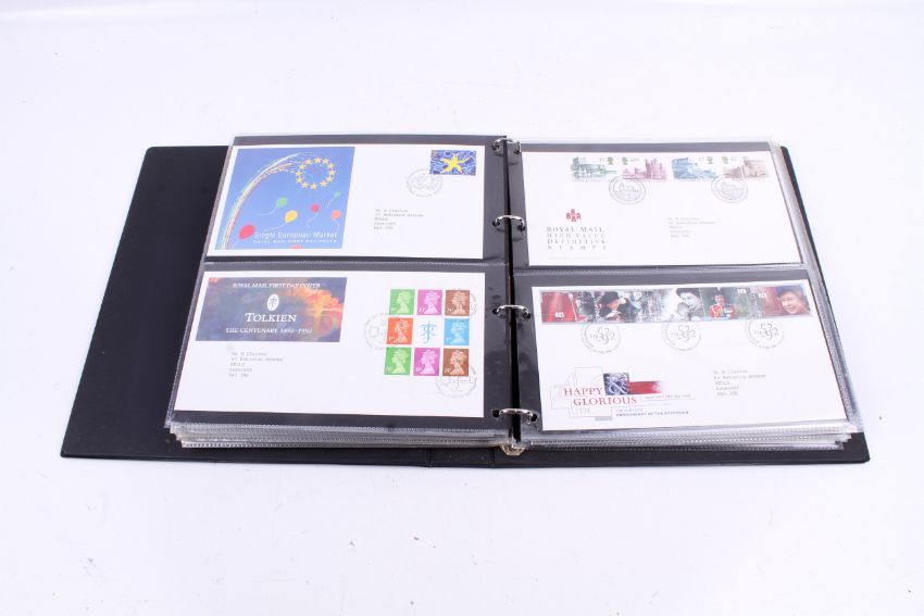 A collection of Great Britain First Day Covers in a Stanley Gibbons Album. From 1969 to 1993 with a range of hand written and typed addresses, noting RAF interest etc.