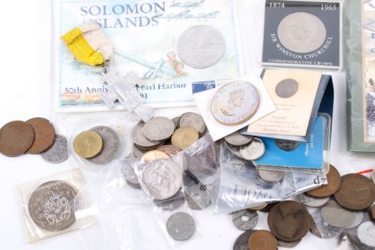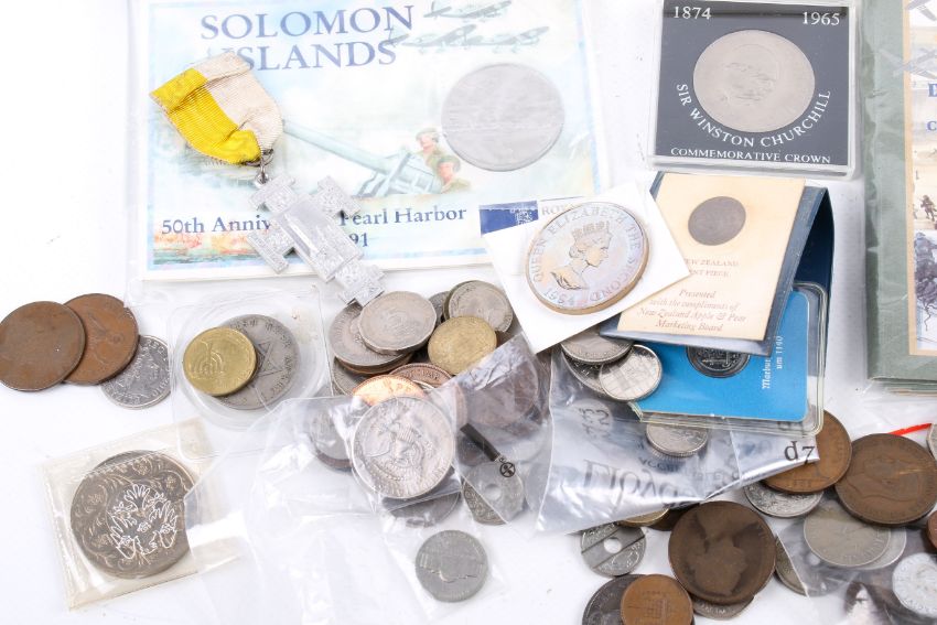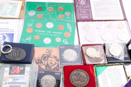 A group of worldwide coins. Noting sets and medallions etc.