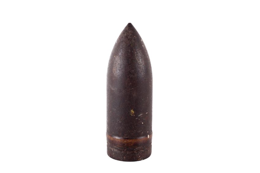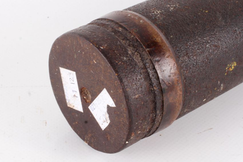 A WWI 3" 20cwt naval shell head. Driving band intact, weight 12.5lbs, H22cm.