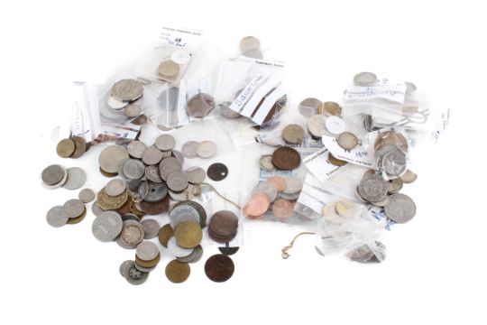 A group of 20th century coins. Including some nicer grade sixpences and some other silver coins also some brass and nickel coins.