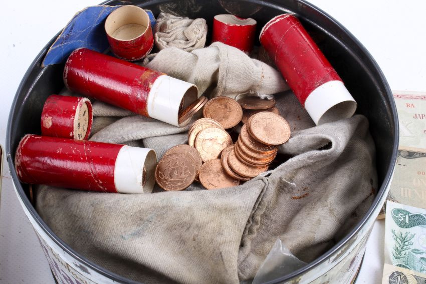 A collection of mainly British coins. Noting a large quantity of 1967 half pennies, a selection of medallions and some worldwide bank notes etc.