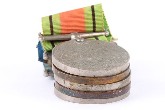 A WWI compass and a group of medals. The compass dated 1915, by Sherwood & Co, London, No 52406, the medals comprising the 1914-15 Star (marked 1089 Pte Allen, W. GDS), WWI Allied Victory Medal, two WWII Defence medals, 1939-45 War Medal, 1939-45 Star, (these unmarked), George V Coronation medallion, together with a Victorian Royal Fusiliers pouch badge.