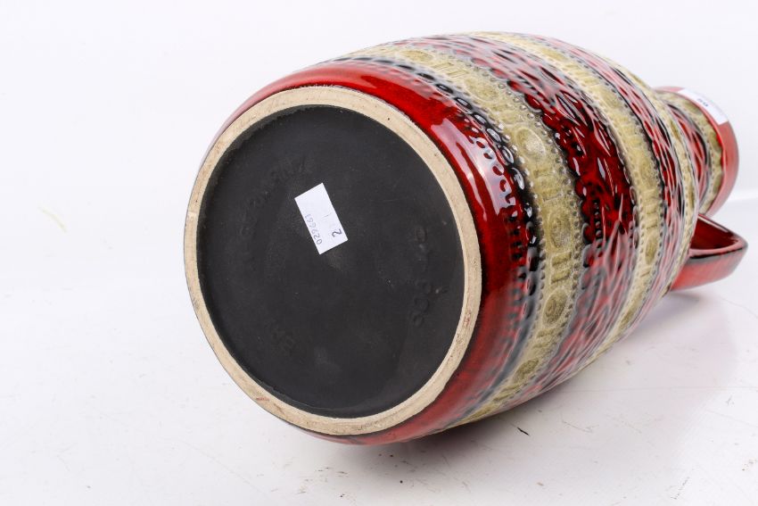 A mid-century Bay West German ceramic two handled red and brown vase. #608-45. H45cm