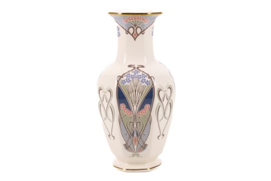 Late 20th century Liberty of London Mason's Ironstone Lanthe vase. Tall baluster form with turned rim in gilt pattern H25cm