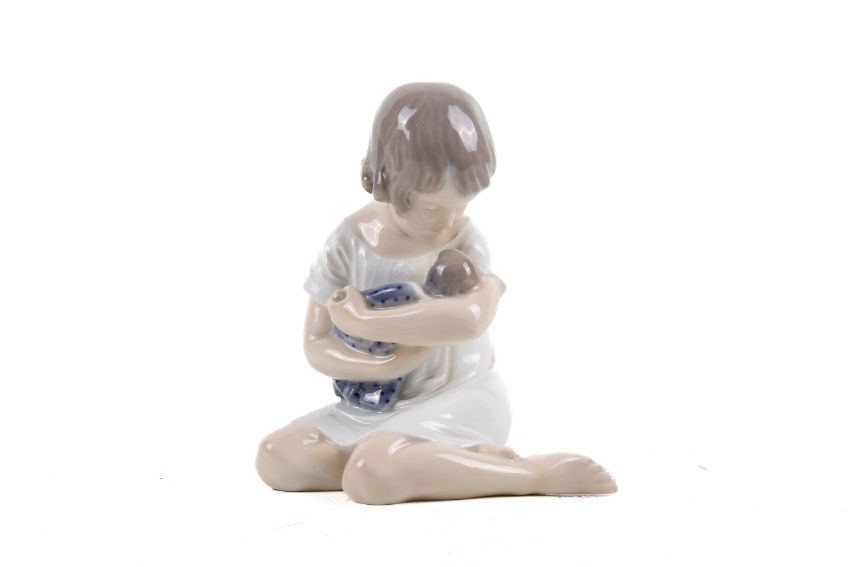 A Royal Copenhagen figure of a girl holding a doll. No.1938, H13cm