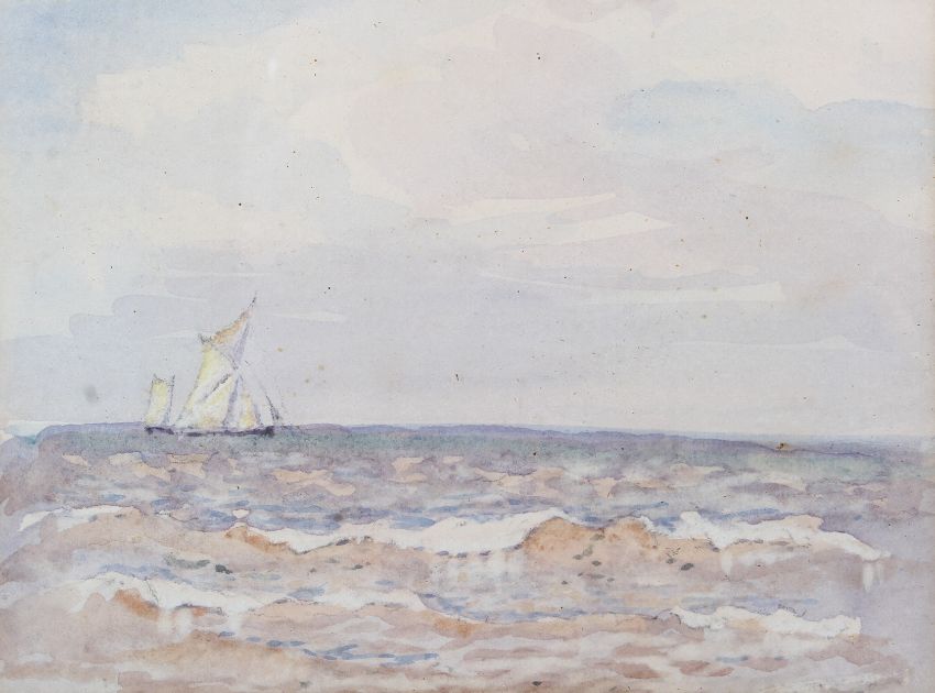 James Simpson Alderson (1856 - 1948), two seascape watercolours. 16cm x 11cm. Framed and glazed, exhibition provenance verso.***This lot is being sold on behalf of Childrens Hospice South West***