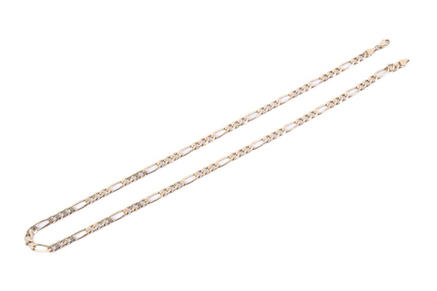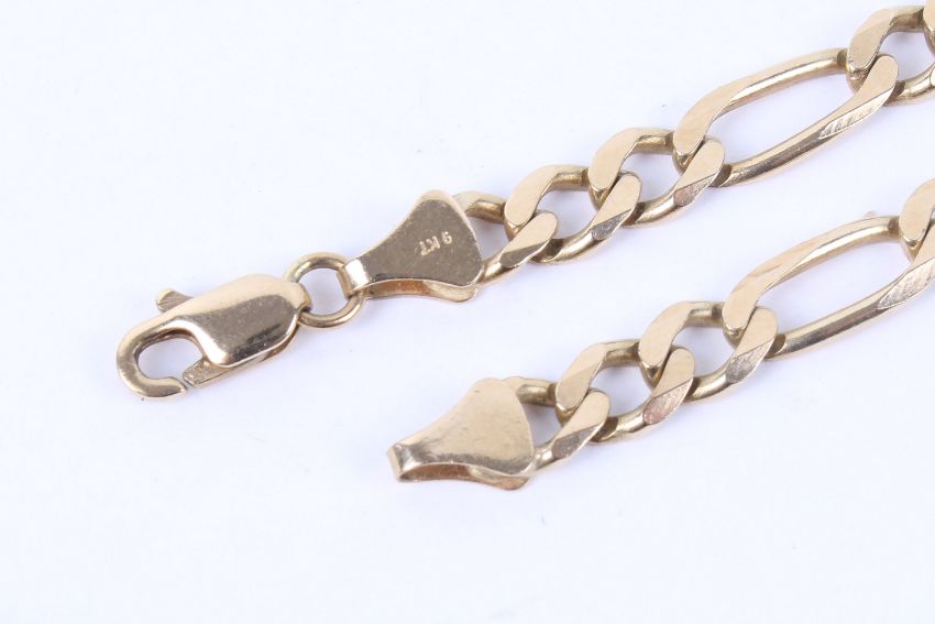 A filed figaro link chain, hallmarked 9ct gold. 500mm length. 16.8 grams gross weight.