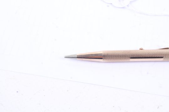 A Yardolette 'Yard-O-Led' stamped 9ct .375 gold propelling pencil. Patent no. 422767, in original box with instruction sheet. Gross 19g