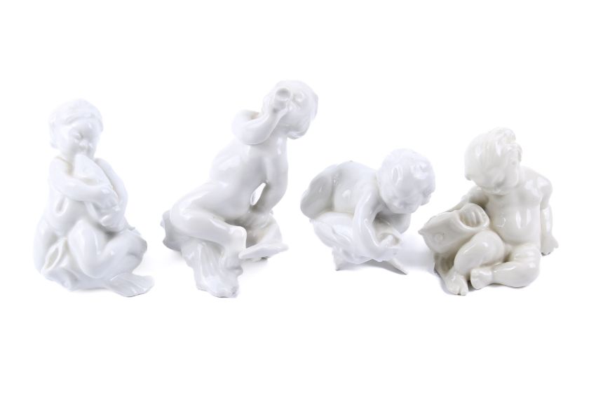 A group of four Bing and Grondahl figurines. Blanc de chine 'sea-children' Max. H11cm