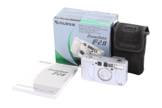 A Fujifilm Zoom Date f2.8 35mm Compact camera. With a Fujinon Zoom 24-50mm f2.8 Super EBC lens, makers box, pouch, instruction manual and strap. Powers on, otherwise untested.
