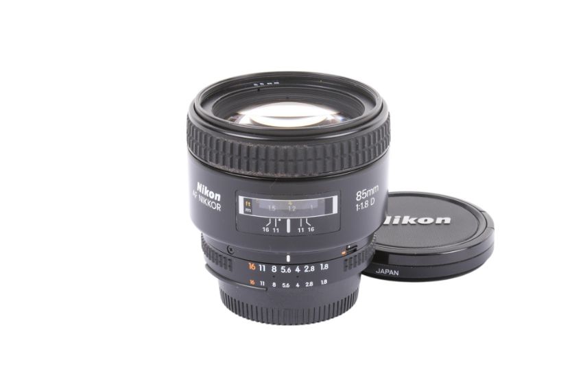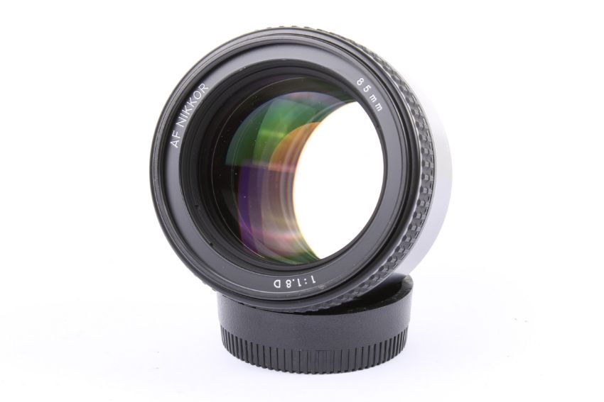 A Nikon AF Nikkor 85mm f1.8 D lens. With Skylight(1B) filter, front and rear caps. VG optical and cosmetic condition. Appears to function correctly.